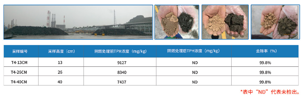 Oil sludge and petroleum hydrocarboncontaminated soil: TTZ with contaminant concentration < 5000mg / kg:75045m3,TTZ with contaminant concentration > 5000mg / kg: 31270m3;COCs removal rate in pilot: > 99%
