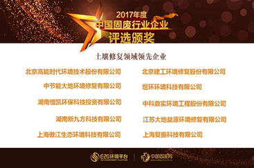 榮獲2017年度(第九屆)中國固廢行業(yè)評比"土壤修復(fù)領(lǐng)先企業(yè)"稱號
