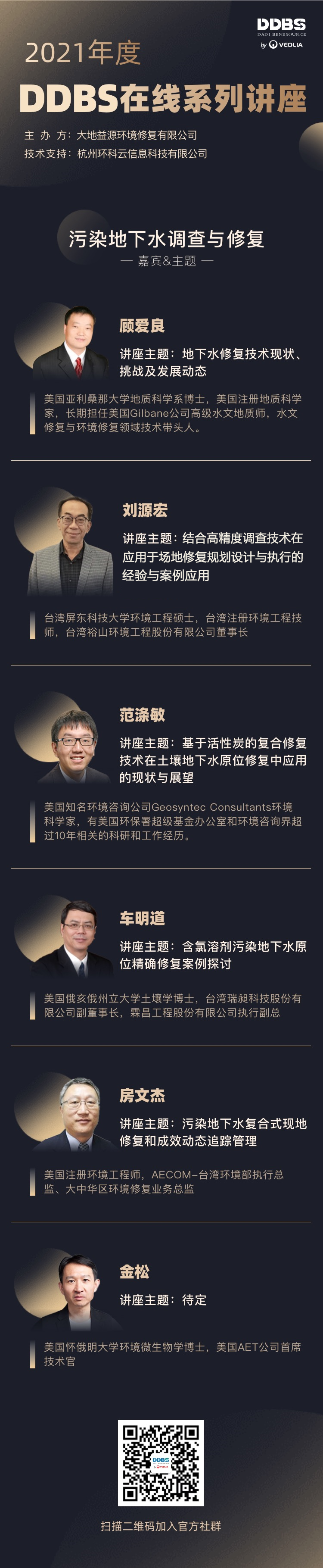 下一期講座初步安排5月份開展,由臺灣資深環境修復企業裕山環境董事長劉源宏分享地下水修復應用經驗。主講內容:高精度調查方法與設備工具應用經驗;調查數據解析與修復規劃應用案例;修復成效查核與成果驗證應用經驗”。請大家屆時踴躍參加,不要錯過。