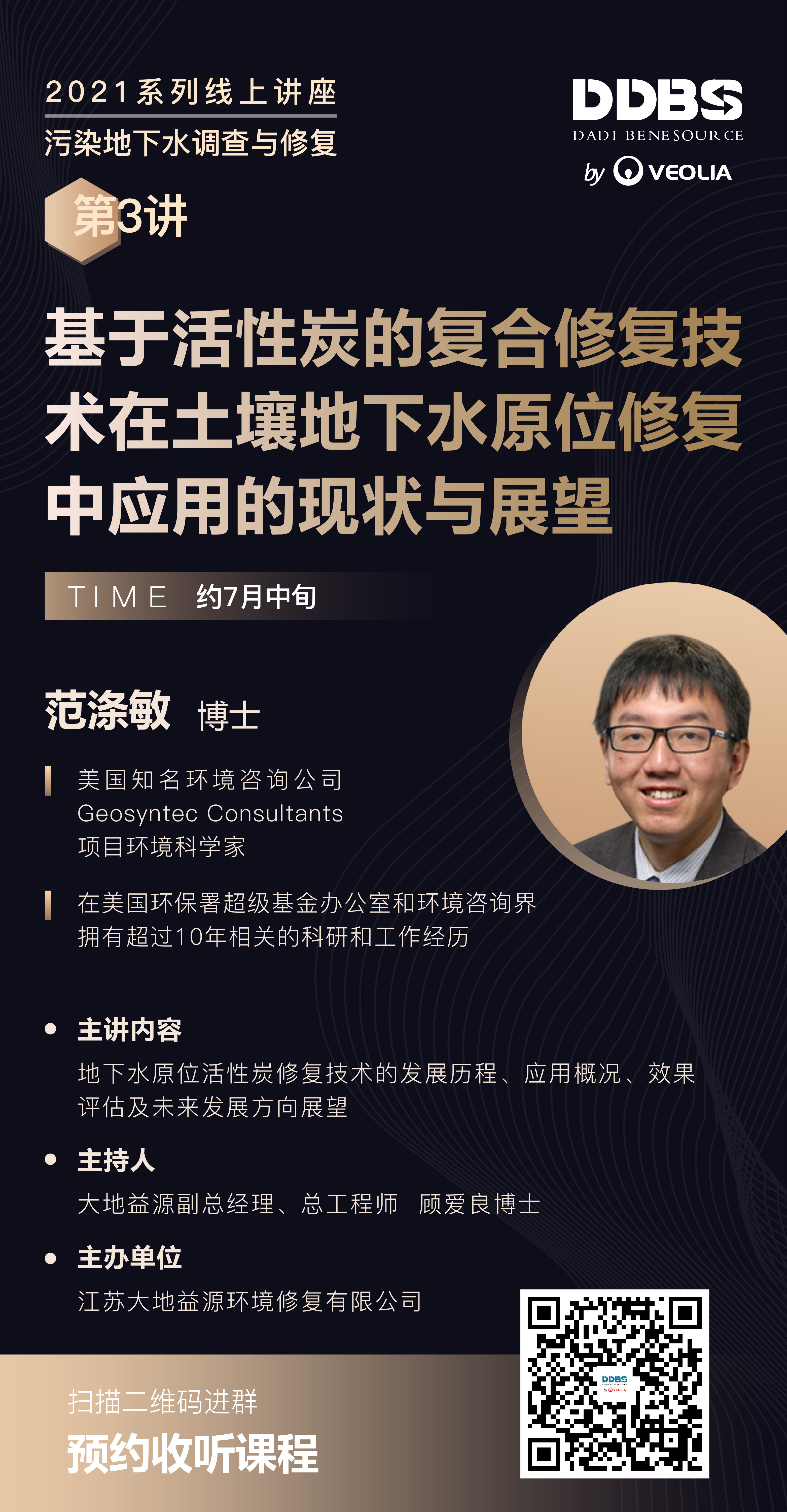 2021年度DDBS系列講座第三期,由范滌敏博士主講題為“基于活性炭的復合修復技術在土壤地下水原位修復中應用的現狀與展望”主題講座。