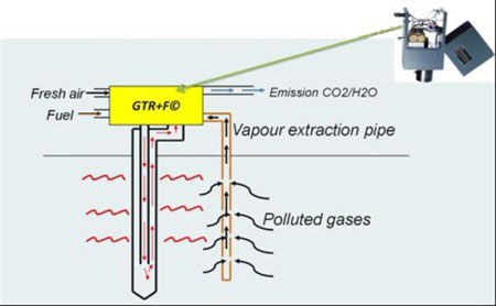 GTR(Gas Thermal Remediation)技術(shù)是一種熱脫附技術(shù)。該技術(shù)能夠治理所有類型土壤的有機(jī)污染物。例如石油烴類、多環(huán)芳烴、多氯聯(lián)苯、氯代有機(jī)物、二噁英、農(nóng)藥以及一些無機(jī)污染物,如氰化物、汞等。該技術(shù)以天然氣或石油為燃料提供熱源,通過熱傳導(dǎo)加熱目標(biāo)治理區(qū)域。同時(shí),通過動(dòng)力控制,用抽真空的方法抽取地下蒸汽。目標(biāo)治理區(qū)域可以分區(qū)獨(dú)立控制,以實(shí)現(xiàn)溫度梯度和能源消耗量的最優(yōu)化。GTR技術(shù)憑借其獨(dú)特的原位治理優(yōu)勢,特別適用于污染深度深、污染濃度高、土壤粘性大的污染場地。
