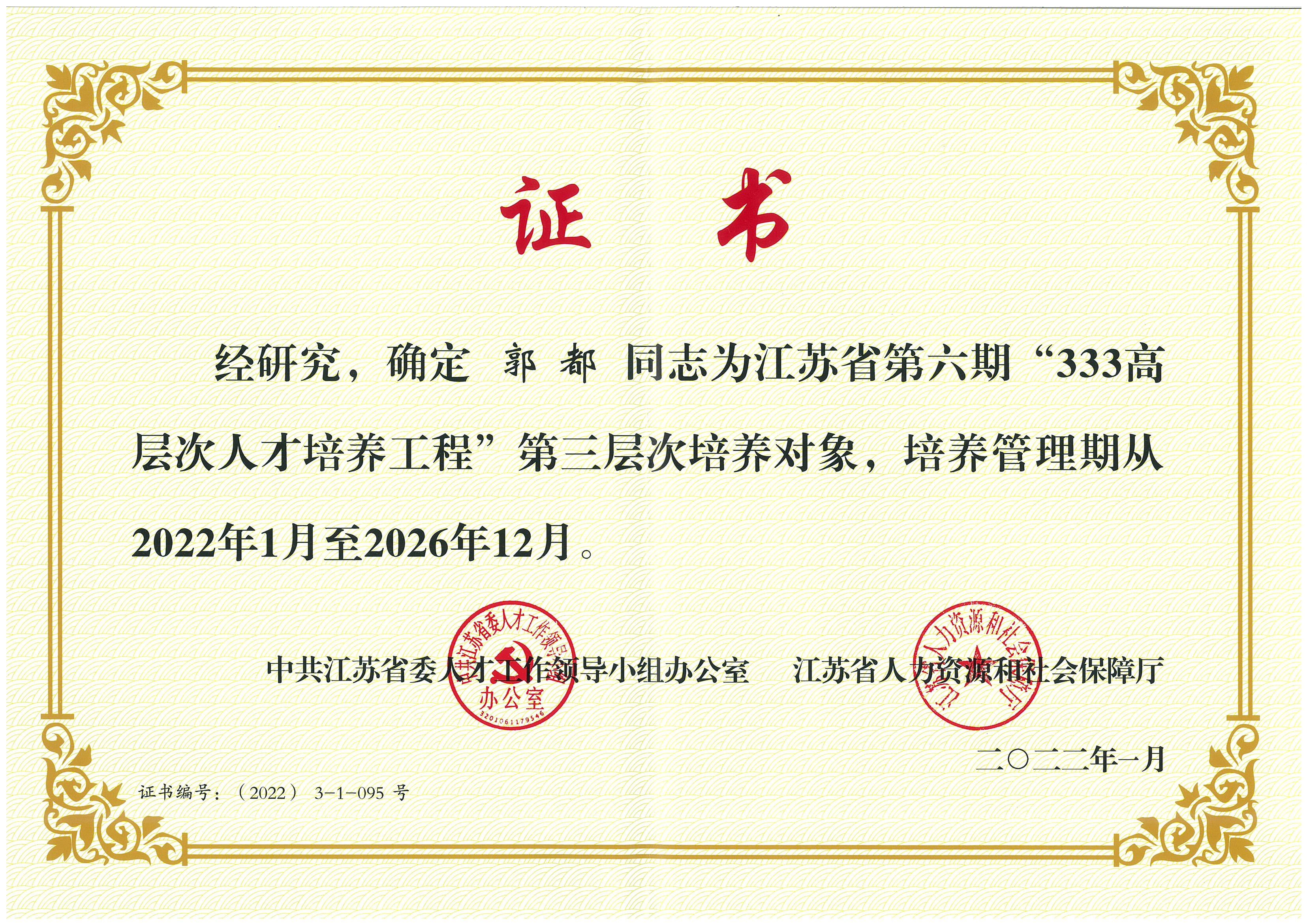 大地益源公司技術設計部負責人、首席工程師郭都入選江蘇省第六期“333高層次人才培養工程”第三層次人才培養對象。