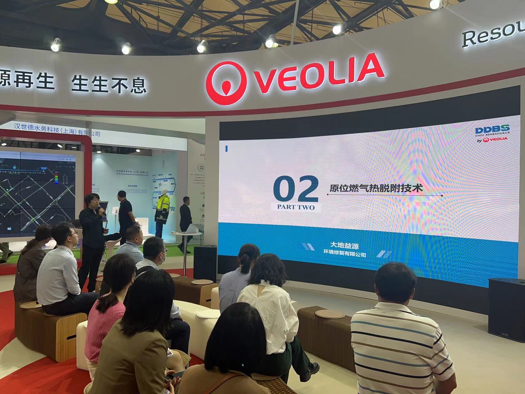 大地益源依托威立雅集團,攜土壤及地下水修復的系統解決方案參加本次環保盛會, 現場展示了燃氣熱脫附與無土覆蓋在內的代表性技術示范,和專業觀眾分享交流了應用經驗。