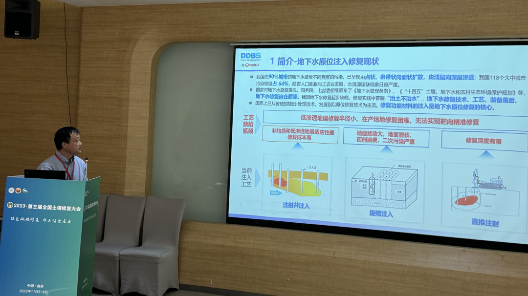 作為大會協(xié)辦單位,大地益源安排了市場、技術(shù)等相關(guān)人員積極參與。公司總工程師顧愛良博士作為專家嘉賓出席,并作題為《地下水原位精準(zhǔn)注入與強(qiáng)化傳輸新裝備研發(fā)及應(yīng)用》技術(shù)交流報告。現(xiàn)場闡述了地下水原位注入修復(fù)現(xiàn)狀、我司牽頭承擔(dān)的國家重點(diǎn)研發(fā)計劃項(xiàng)目“地下水原位修復(fù)功能材料精準(zhǔn)注入與強(qiáng)化傳輸技術(shù)及裝備研究”成果,提出了當(dāng)下實(shí)施土壤修復(fù)的思考和建議,和專業(yè)觀眾分享交流了應(yīng)用經(jīng)驗(yàn)。