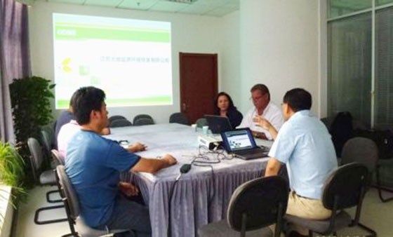 2013年9月24-26日,美國土壤修復行業(yè)兩家公司專家分別到我司作技術交流。我司員工正在聽取國外專家介紹某種土壤修復設備特性我司員工正與國外專家討論GTR技術...