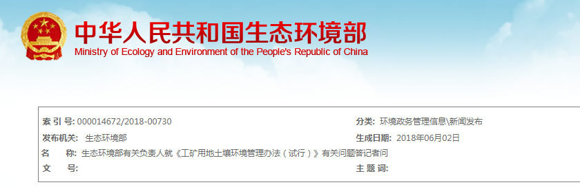 生態環境部日前發布《工礦用地土壤環境管理辦法(試行)》(以下簡稱《辦法》)。生態環境部有關負責人就《辦法》的背景、意義、主要內容及其特點回答了記者提問。 問:《辦法》出臺有哪些背景和意義? 答:2...