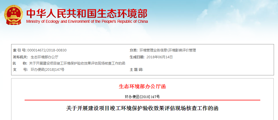 各有關單位: 根據《關于印發〈生態環境部2018年建設項目竣工環境保護驗收效果評估工作方案〉及相關文件的通知》,我部委托中國環境監測總站和環境保護部環境工程評估中心于2018年6月19日至6月30日...
