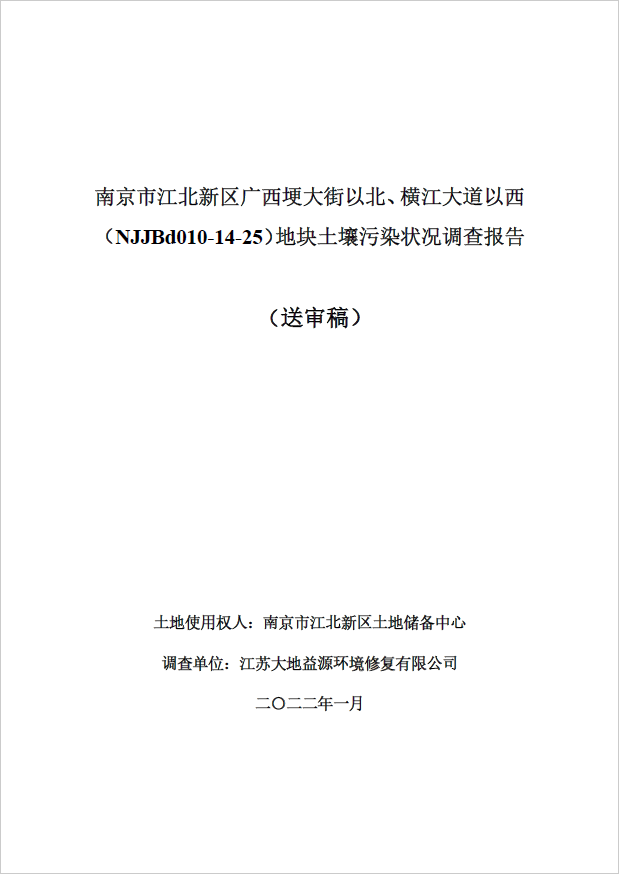 南京市江北新區廣西埂大街以北、橫江大道以西(NJJBd010-14-25)地塊土壤污染狀況調查報告-公示