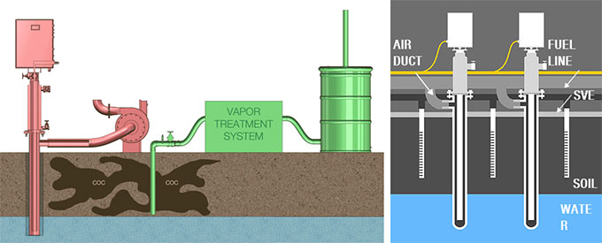 該技術(shù)以天然氣或燃油為燃料提供熱源,通過熱傳導(dǎo)加熱目標(biāo)治理區(qū)域,同時(shí)通過動力控制,形成負(fù)壓抽提地下蒸汽。目標(biāo)治理區(qū)域可以分區(qū)獨(dú)立控制,以便溫度梯度和能源的消耗量最優(yōu)化。通過模塊化復(fù)制,可以無限擴(kuò)展,對項(xiàng)目規(guī)模和場地的適應(yīng)性強(qiáng)。